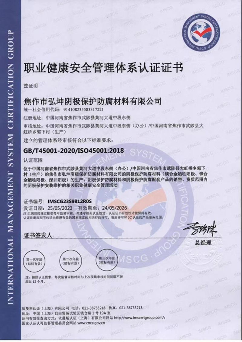 職業健康與安全管理體系認證證書