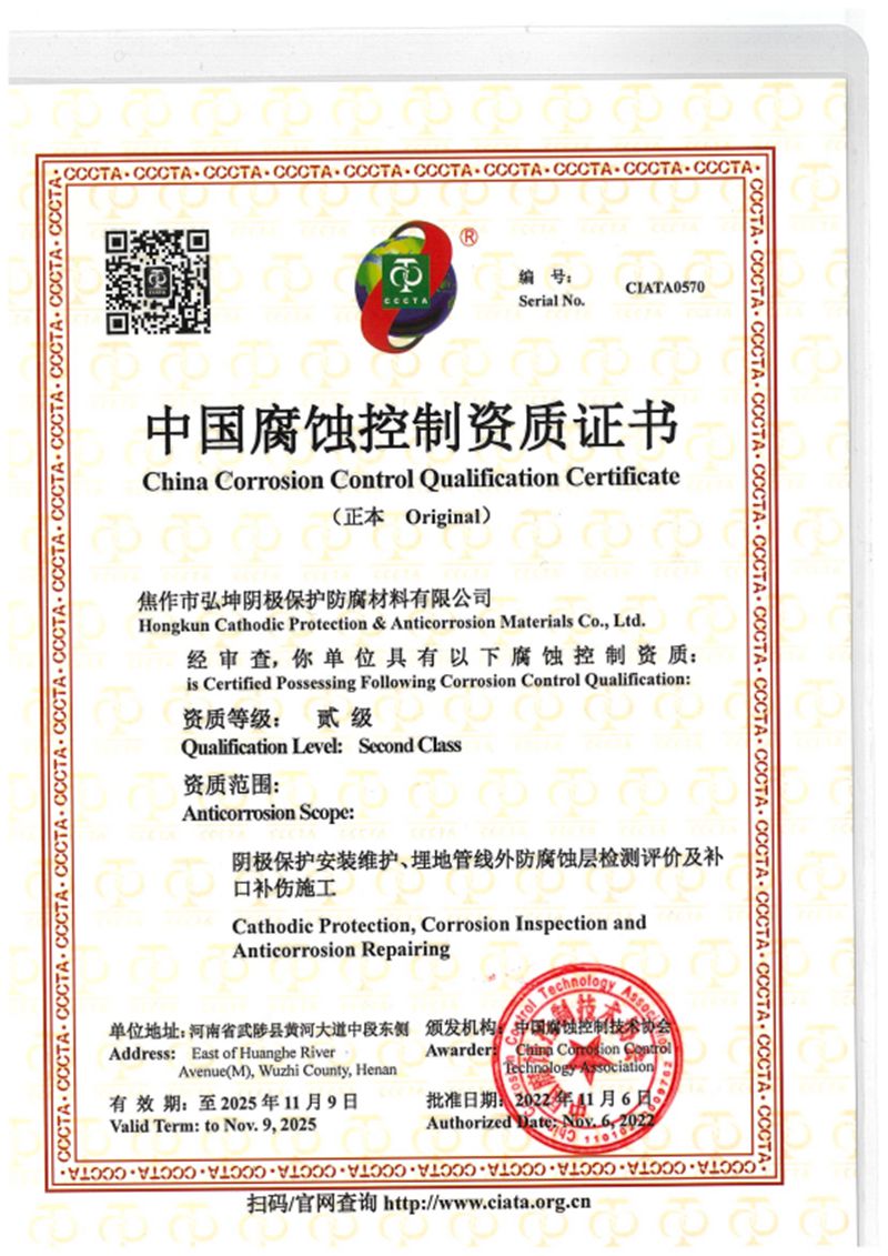 中國腐蝕控制資質證書