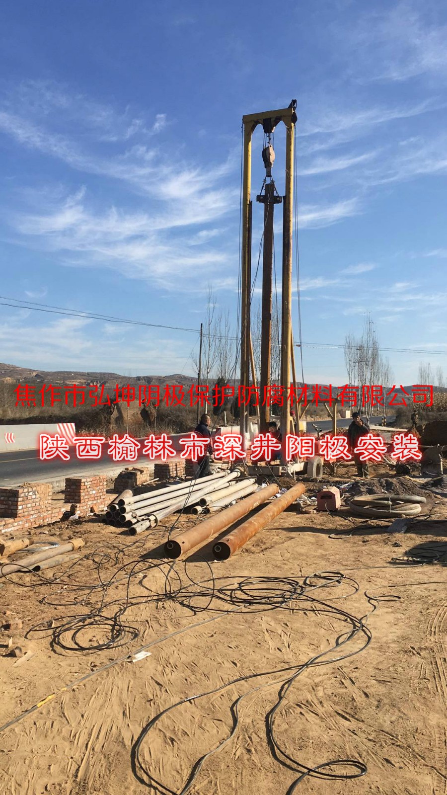 弘坤施工團隊近期正在陜西榆林市場站進行深井陽極安裝